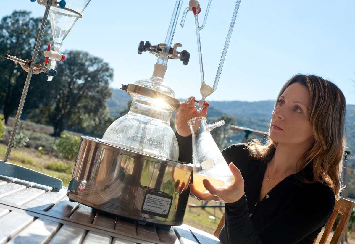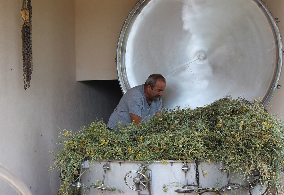 A chacun son univers : Marina c'est l’aromathérapie et la fabrication de produits cosmétiques dans son laboratoire, Stephan c’est la production de plants, la culture de 13 plantes aromatiques différentes et leur distillation en basse pression..